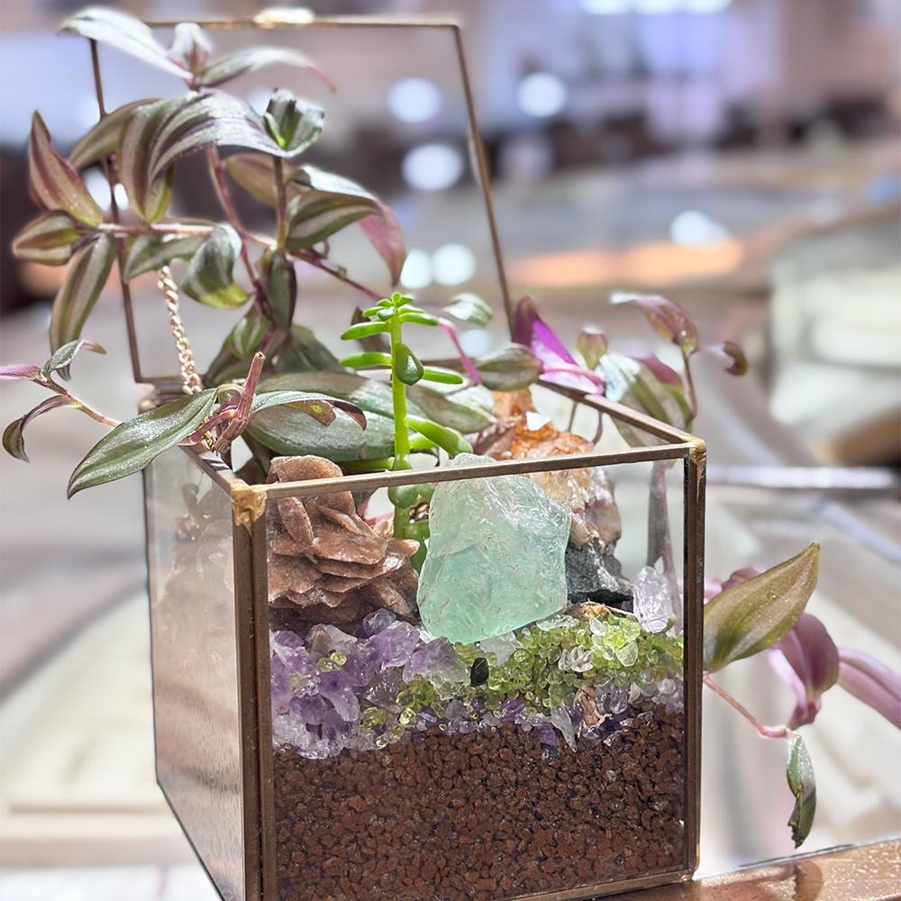 選用多肉植物與礦物相結合,將柔美綠意與晶石光澤融合,設計出宛如自然共生的完美作品,帶來無與倫比的視覺享受。